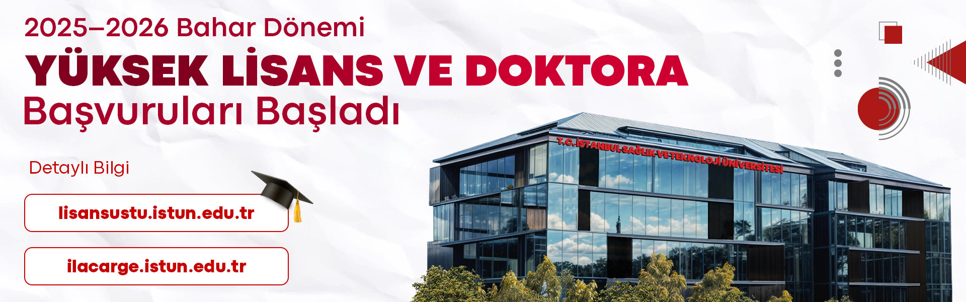 Üniversitemizin 2025–2026 Bahar Dönemi lisansüstü programlarına başvurular başlamıştır. Online başvuru formuna...